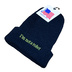 ネイビーカラーのmade in USAのニットキャップ。蛍光色で「I'm not a robot(私はロボットではありません)」と刺繍が入っています。ざっくり編まれて伸縮性もよく、どんな頭のサイズにもフィットします。年間通して着用可能です。